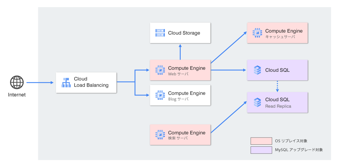 GCP環境に構築されたECサイトシステムのOSのリプレイスとデータベースのアップグレードを実施しました。